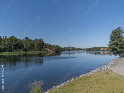 Waterfront view over the bay Djurgårdsviken, a sunny summer day in Stockholm