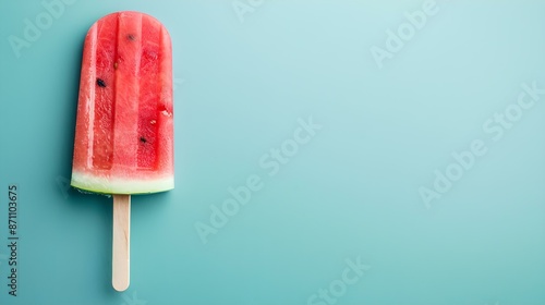 Watermelon Popsicle on a cyan Background with Copy Space