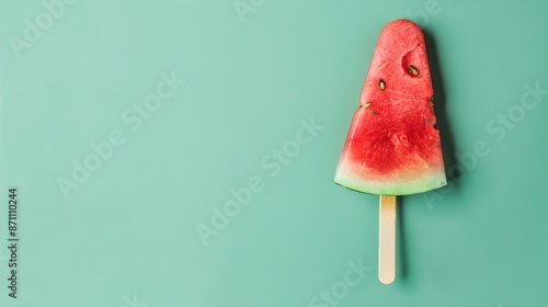 Watermelon Popsicle on a light green Background with Copy Space