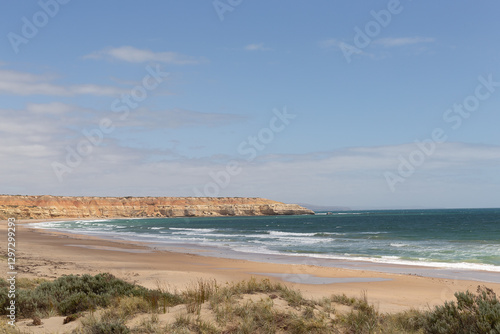 sea, ocean, sand, beach, wave, untouched, clean, pristine, horizon, landscape, seascape, foreshore, pure, unspoiled, honed, immaculate, shoreline, adelaide, south australia, australia, naturist, naked, sky, blue, scenic, scenery