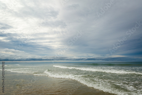beach, sea, ocean, sky, water, sand, wave, wave, cloud, coast, nature, landscape, summer, horizon, shore, cloud, surf, vacation, storm, seascape, travel, tropical, sun, island