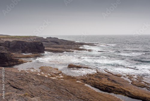 Waves crashing on large rocks at Hook Head, Wexford, Republic of Ireland.