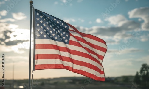 flag, american, patriotic, symbol, national, star, stripes, red, white, blue, wave, wind, sky, cloud, sunlight, daytime, fabric, texture, independence, freedom, country, nation, patriotism, history, politic, background, image, vertical, vibrant, colours, graphic, design, element, illustration