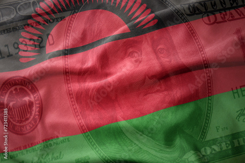 waving colorful flag of malawi on a american dollar money background. finance concept.