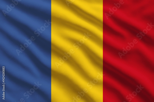 Waving flag of Romania, Romanian flag blowing in the wind, full frame smooth fold