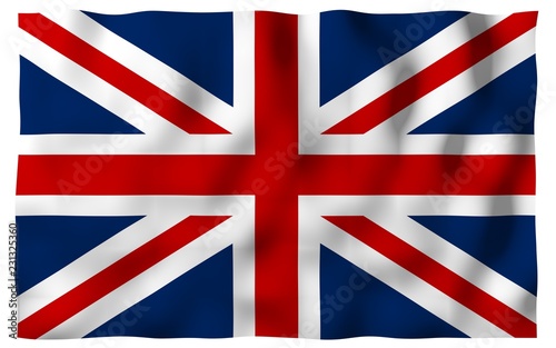 Waving flag of the Great Britain. British flag. United Kingdom of Great Britain and Northern Ireland. State symbol of the UK. 3D illustration