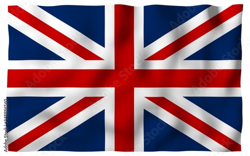 Waving flag of the Great Britain. British flag. United Kingdom of Great Britain and Northern Ireland. State symbol of the UK. 3D illustration