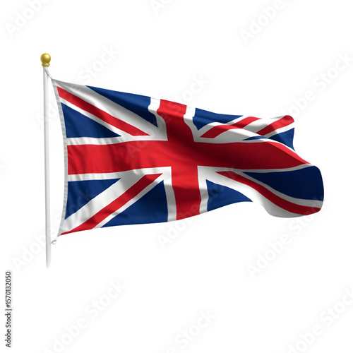 Waving UK flag with visible thread texture and soft fabric folds, high-resolution national symbol, isolated on transparent background PNG, clean detailed image