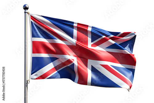 Waving union jack flag of the united kingdom on a flagpole isolated on transparent background