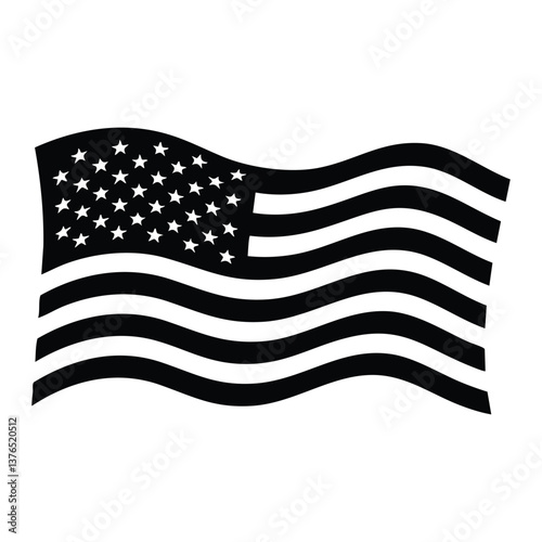 Wavy Black and White American Flag Silhouette Design without Flagpole