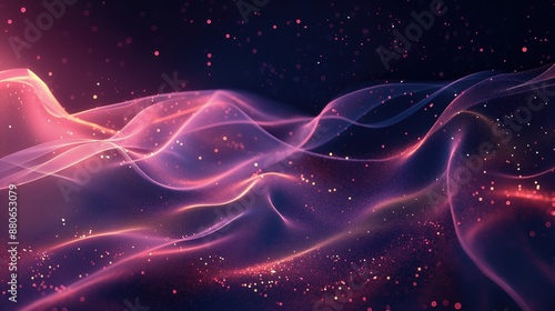 Wavy purple background with glowing effect on black. Vibrant abstract texture for background