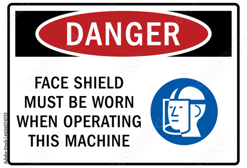 Wear face shield sign and labels face shield must be worn when operating this machine