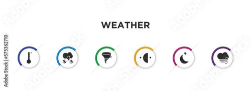 weather filled icons with infographic template. glyph icons such as degree, thundersnow, tornado, last quarter, twilight, icy vector.