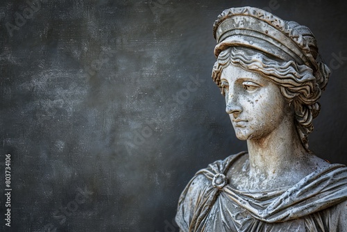 ancient, greek, statue, woman, weathered, historical, sculpture, art, architecture, culture, history, mythology, classical, antique, stone, profile, face, headpiece, ornate, decorative, vintage, textured, monochrome, dramatic, background, landscape, relic, ruin, archaeology, exhibit, museum