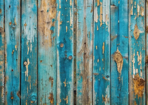 Weathered blue wooden wall with aged, peeling paint and worn texture, providing ample copy space for text or design, evoking a sense of nostalgia and character.