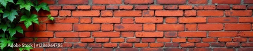 weathered red brick wall with aged mortar and ivy vines, outdoor background, garden wall, red brick wall