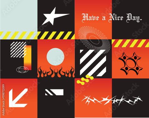 vector, set, icon, art, 2000, flames, design, print, illustration, pattern, layout, trendy, fashion, bauhaus, graphic