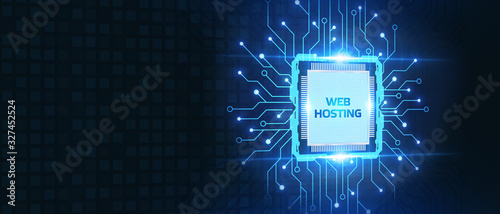 Web Hosting. The activity of providing storage space and access for websites. Business, modern technology, internet and networking concept.