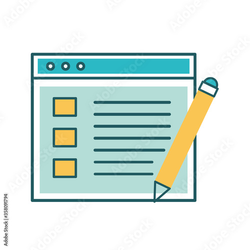 Website page with pencil line and fill style icon design, Technology internet media layout development and communication theme Vector illustration
