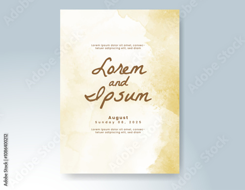 Wedding card invitation template with hand painted watercolor splash