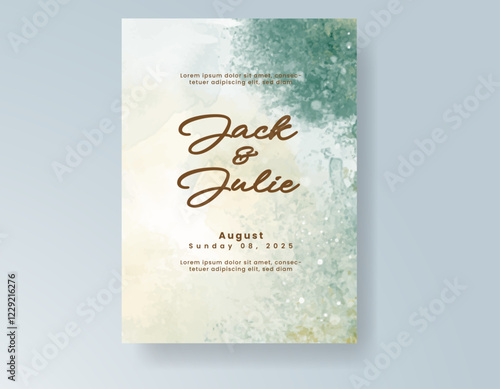 Wedding card invitation template with hand painted watercolor splash