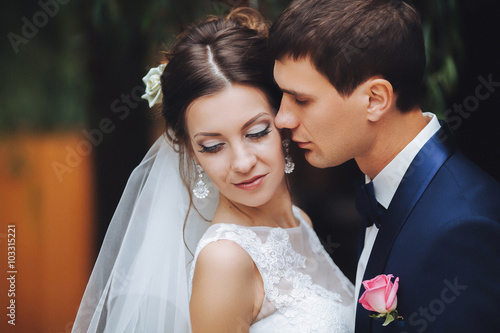 wedding couple. Beautiful bride and groom. Just married. Close u