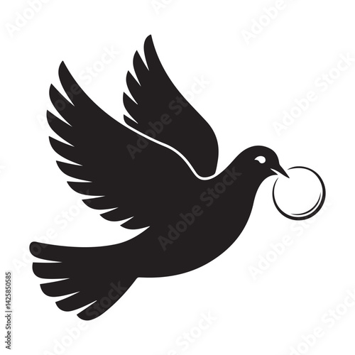 Wedding Dove With Ring Vector Black silhouettes. with white background