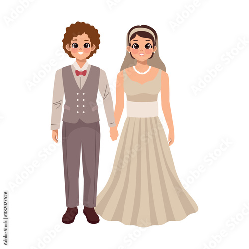 wedding, couple, bride, romantic, groom, bridal, bridal gown, dress, ceremony, fun, love, marriage, celebration, happy, woman, man, married, romance, human relationships, wife, vector, illustration, isolated, isolation, design