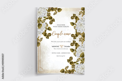 WEDDING INVITATION FRAME WITH FLOWER DECORATIONS WITH FRESH LEAVES