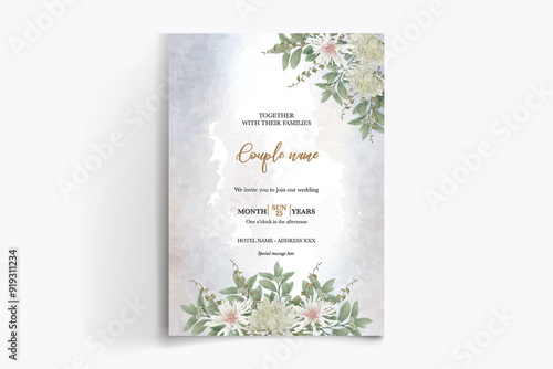 WEDDING INVITATION FRAME WITH FLOWER DECORATIONS WITH FRESH LEAVES