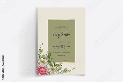 WEDDING INVITATION FRAME WITH FLOWER DECORATIONS WITH FRESH LEAVES