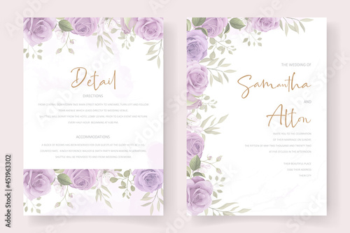 Wedding invitation template with beautiful flowers and leaves
