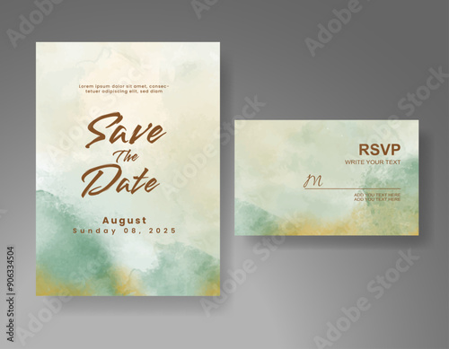 Wedding invitation with Abstract splashed watercolor background
