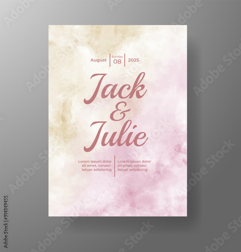 Wedding invitation with Abstract splashed watercolor background