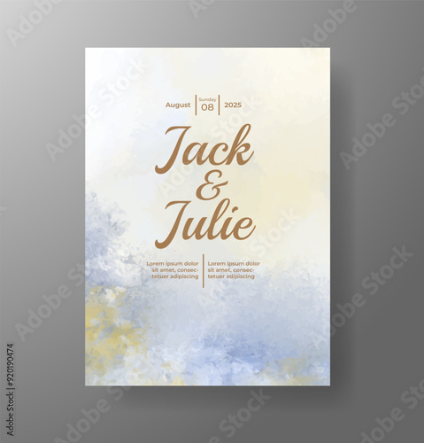 Wedding invitation with Abstract splashed watercolor background