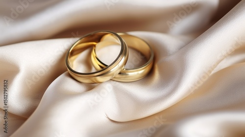 Wedding ring. Wedding rings on the table in a jewelry store. Wedding accessories. Jewelry ring in luxury jewelry store. Luxury jewelry shop. Wedding or Engagement Concept with copy space.