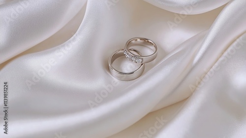 ring, wedding, silk, fabric, soft, texture, love, marriage, jewellery, engagement, luxury, romance, satin, elegance, textile, light, shiny, metal, commitment, pair, smooth, precious, bridal, ceremony, matrimony, union, nuptials, fashion, design, white, diamond, band, accessory, gold, silver, rich, delicate, closeup, craft, tailor, copy space, empty space