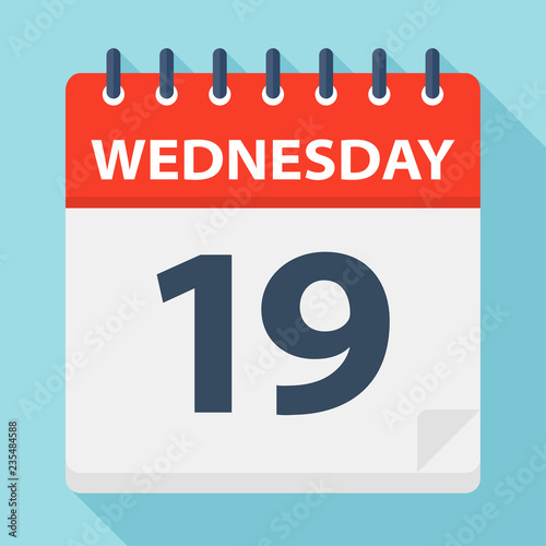 wednesday, 19, calendar, icon, vector, illustration, date, day, week, isolated, rounded, month, page, flat, red, grey, white, blue, sky, background, organiser, plan, schedule, time, today, template, square, leaf, paper, 2018, 2019, 2020, 2021, 2022