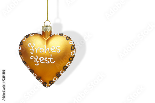 Weihnachtskarte mit goldenem Herz vor weißem Hintergrund