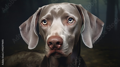 Weimaraner Dog Portrait with Engaging Expression in Natural Setting