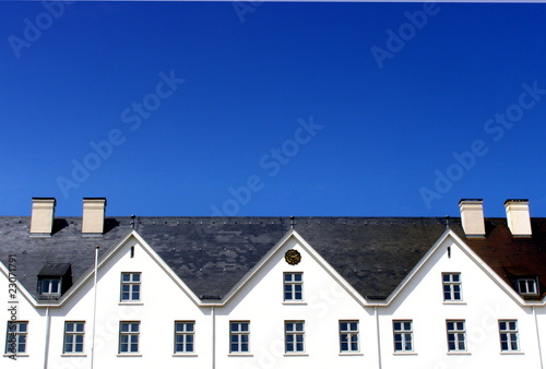 gable, image, architecture, blue, triangle, historic, feature, paint, house, heaven, clear, light, chimney, window, day, white, weather, series, roof