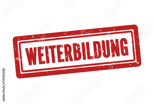 Weiterbildung. Ein roter Stempel isoliert auf weissem Hintergrund im grunge stil.
