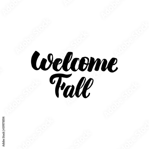 Welcome Fall Handwritten Calligraphy. Vector Illustration of Brush Pen Lettering Isolated over White Background.