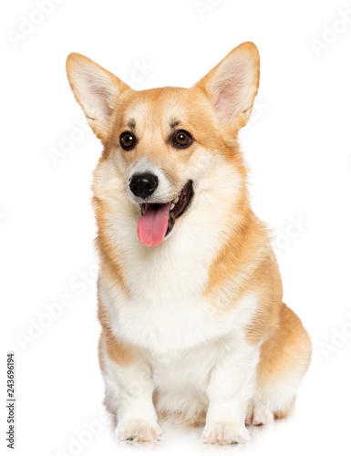 Welsh Corgi Pembroke Dog Isolated on White Background in studio