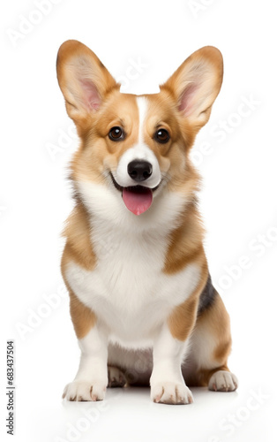 Welsh Corgia dog sitting and looking at the camera in front isolated of white background
