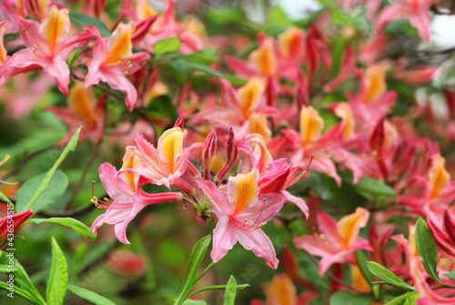 rhododendron, pink, orange, glade, timberland, fragrant, flocked, evergreen, bush, shrub, dark, deep, flower, flowering, flower, bloom, bloom, blooming, bulb, summer, season, floral, flora, natural, nature, garden, closeup, closeup, spring