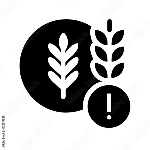 wheat, circle, exclamation, glyphs, flat, vector, icon, agriculture, grain, symbol, design, food, nature, illustration