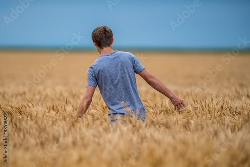 agriculture, autumn, boy, fall, farm, farming, field, grass, harvest, man, walk, walking, wheat
