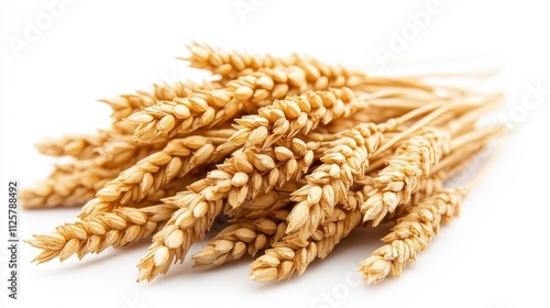 Wheat field isolated on a white background, cutout style, showcasing the golden stalks of wheat swaying in the wind, symbolizing agriculture, nature, and harvest.