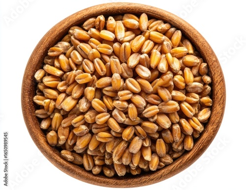wheat, grain, seed, brown, gold, healthy, food, organic, whole, natural, alimentary, bowl, wooden, round, heap, pile, top, view, isolated, white, background, closeup, foodstuff, agriculture, harvest, farming, grain, kernel, nourishment, diet, carbohydrate, protein, fiber, energy, pale, yellow, light, dry, fresh, uncooked, ingredient, cooking, baking, tasty, nutrient, edible, produce